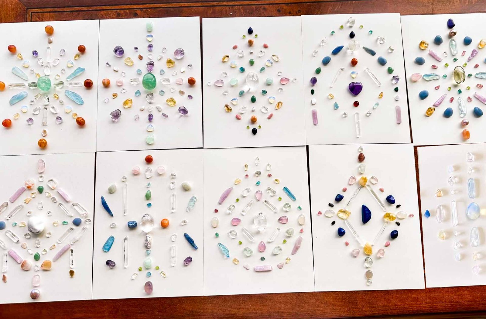 A crystal grid is an energetic arrangement where multiple crystals are placed in a geometric pattern with a specific purpose and focus. It can be used for all manner of intentions—whether healing present emotions or guiding future events—and helps steer things toward a positive outcome.